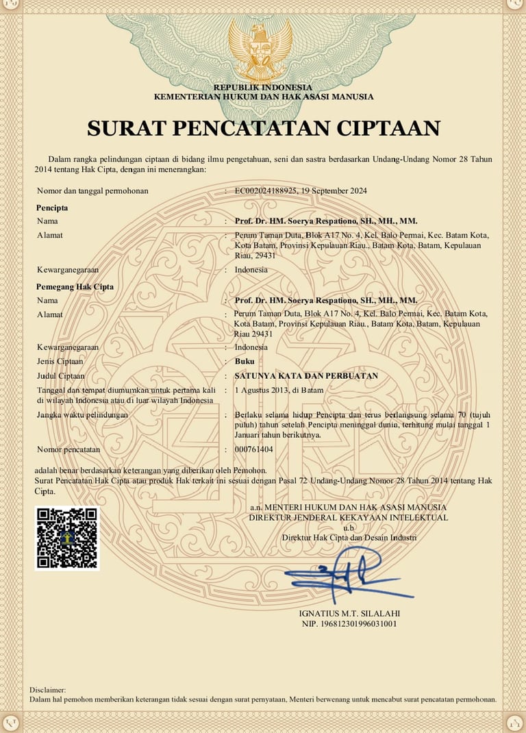 - Prof. Dr. HM. Soerya Respationo, SH., MH., MM.